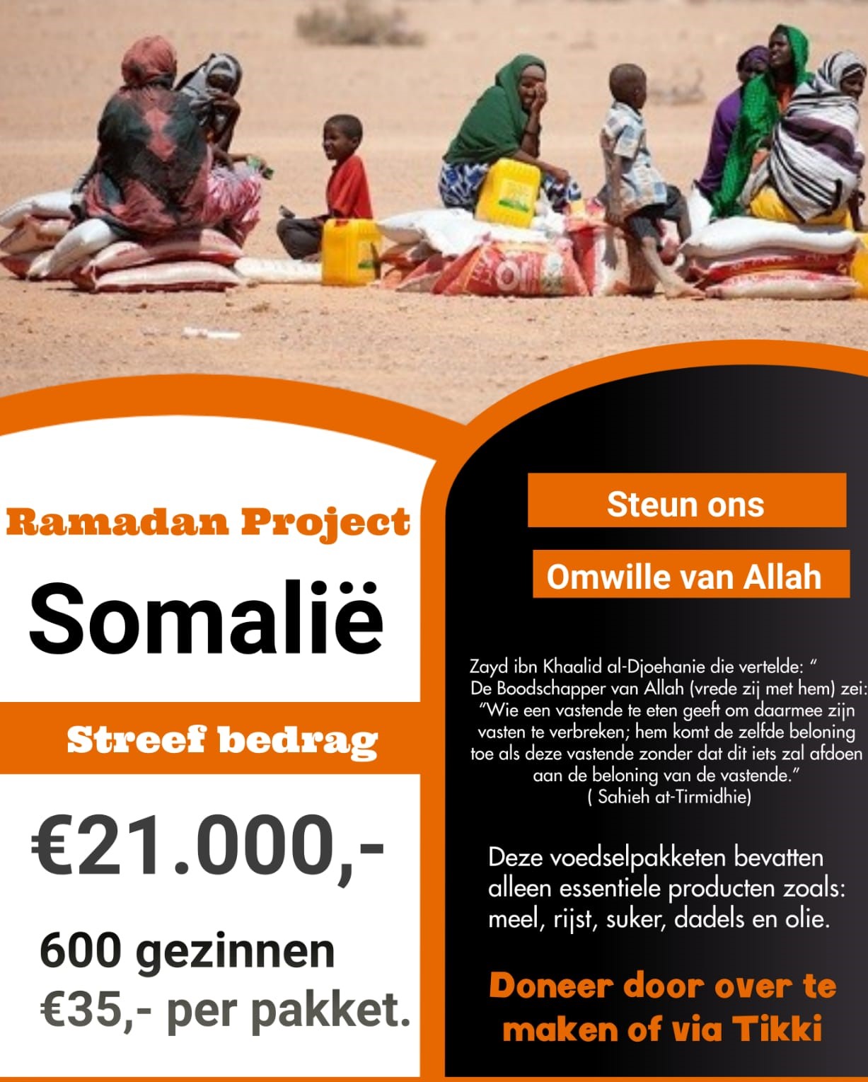 Als laatste hebben we hulp aangeboden aan ongeveer 150 kinderen, in een kleine dorpje in noord Somalië, waarvan een aantal weeskinderen. De hulp bestond uit: voedsel, water en kleine cadeautjes om ze blij te maken voor Suikerfeest.